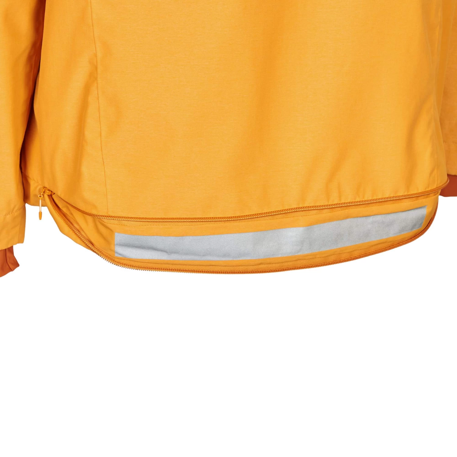 Pfifig gelöst ist die breite reflektierende Fläche hinter dem RV am unteren Saum: Diese lässt sich ganz einfach mit einem Griff zum Zipper hervorzaubern.